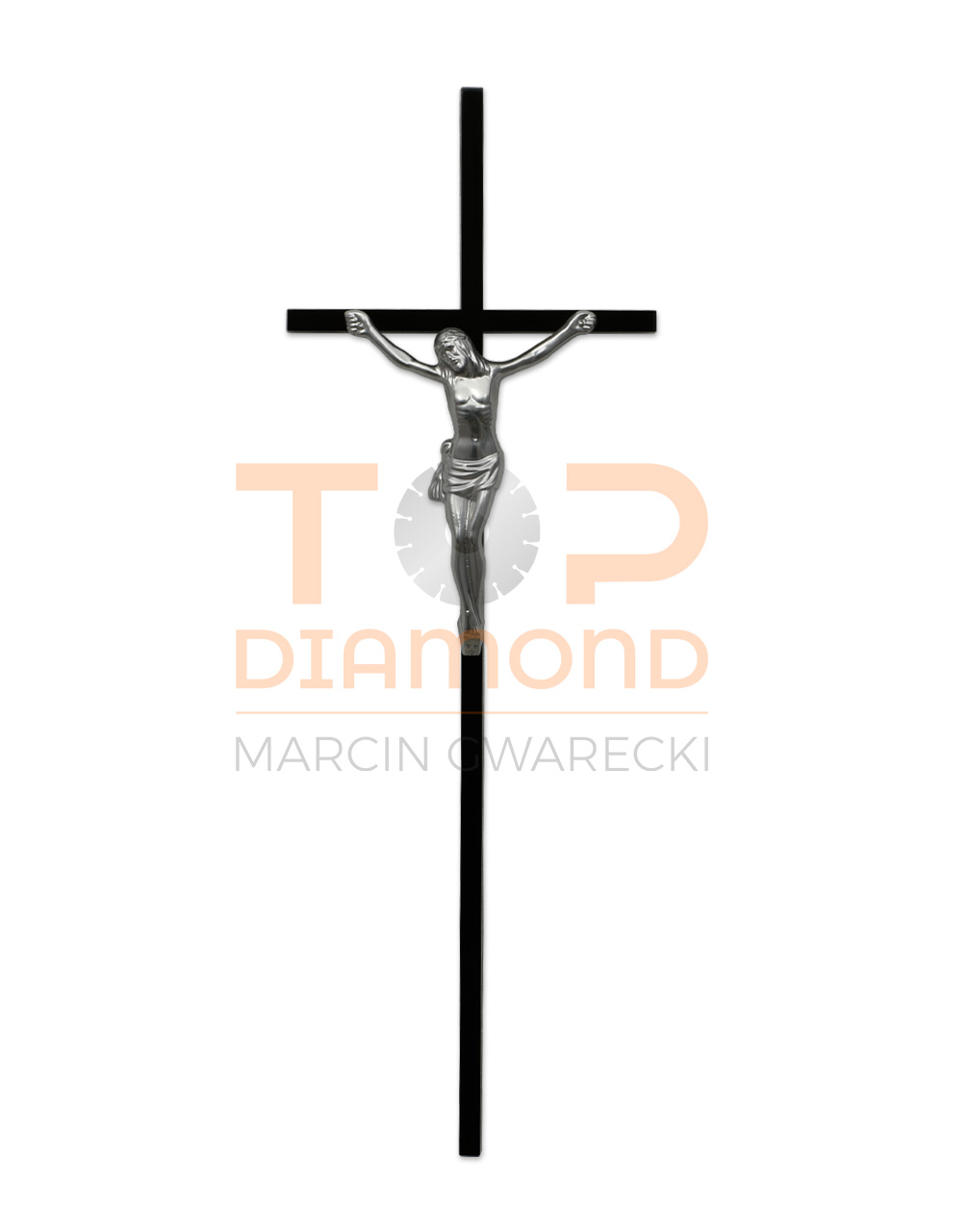 KRZYŻ ALUMINIOWY CZARNY KWADRAT ROMANO Z PASYJKĄ