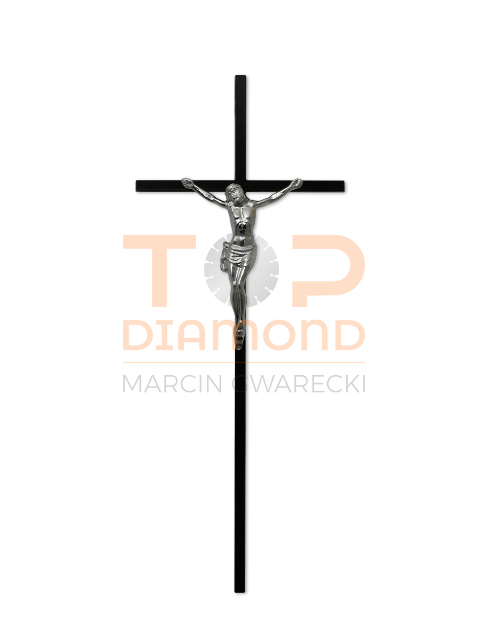 KRZYŻ PROSTY Z WIZERUNKIEM SREBRNYM 1cm CZARNY