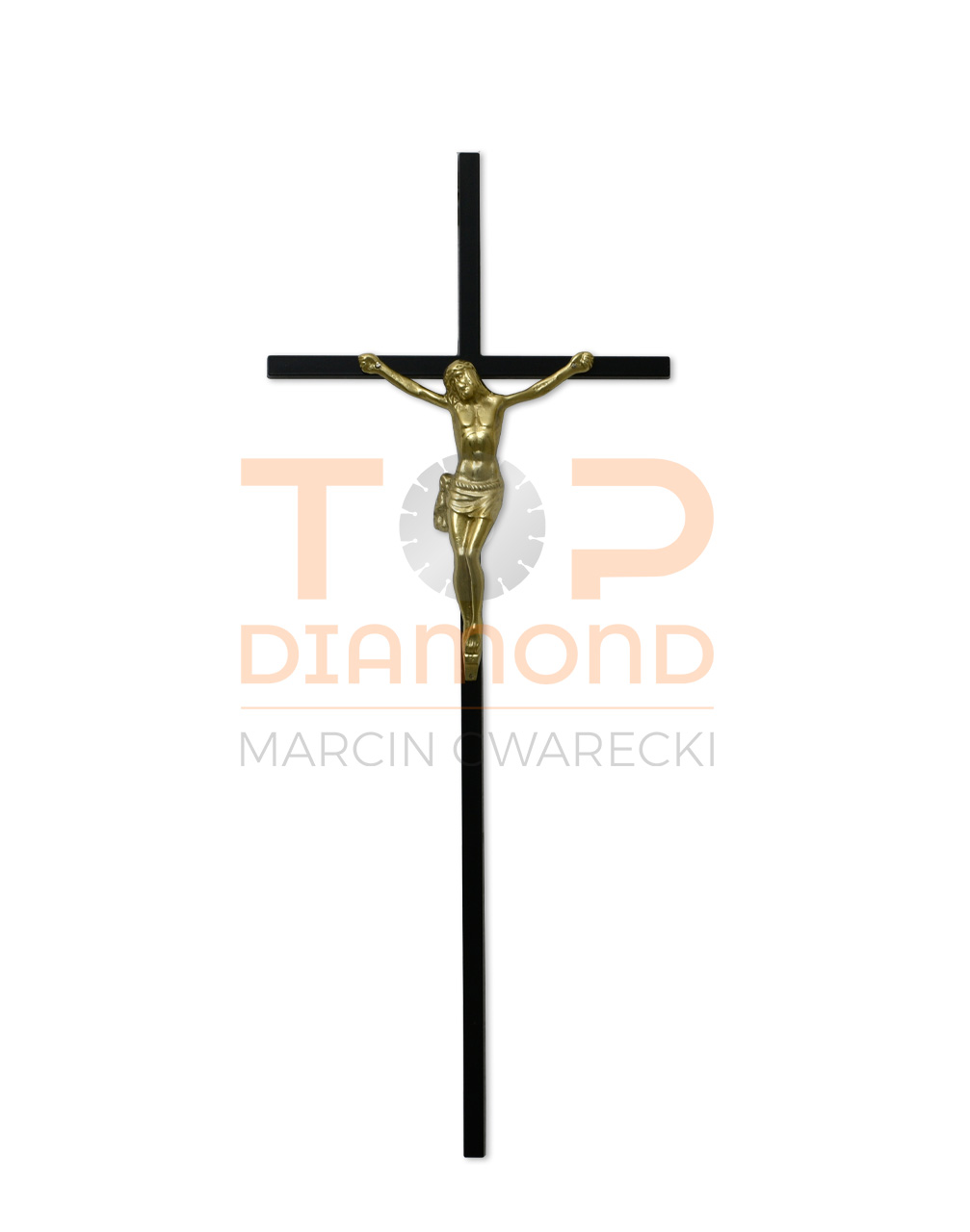 KRZYŻ PROSTY Z WIZERUNKIEM ZŁOTY1cm CZARNY