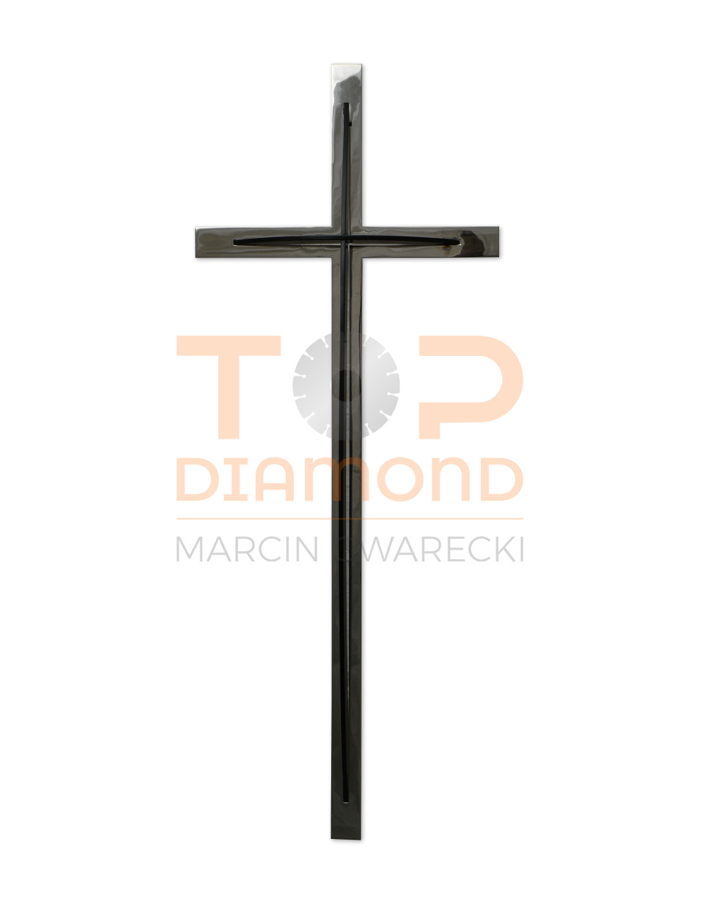 Krzyż wykonany z wysokiej jakości stali nierdzewnej, składający się z dwóch części, srebrnej ramki oraz czarnego płaskownika.
