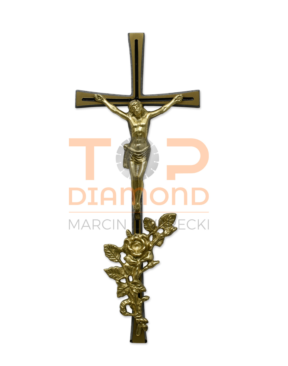KRZYŻ Z WIZERUNKIEM MOSIĘŻNY Z RÓŻĄ 37 cm