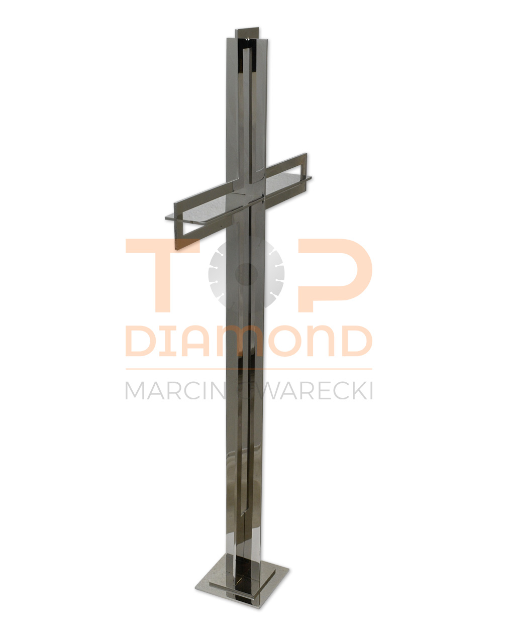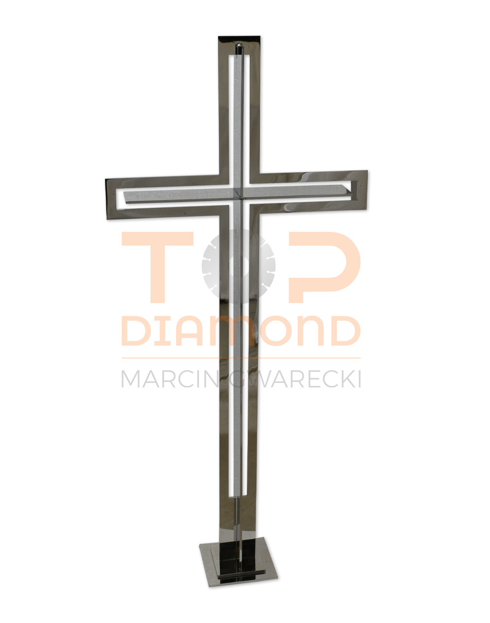 / KRZYŻ ZE STALI NIERDZEWNEJ Z PŁASKOWNIKIEM W RAMCE