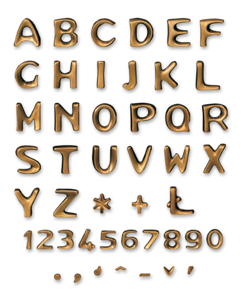 Wszystkie elementy są mocowane przy pomocy bolców, które stanowią integralną część liter lub znaków.