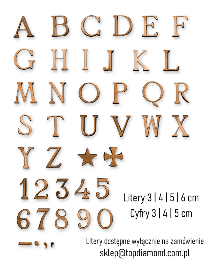 Oferujemy również komplety cyfr i znaków interpunkcyjnych.
