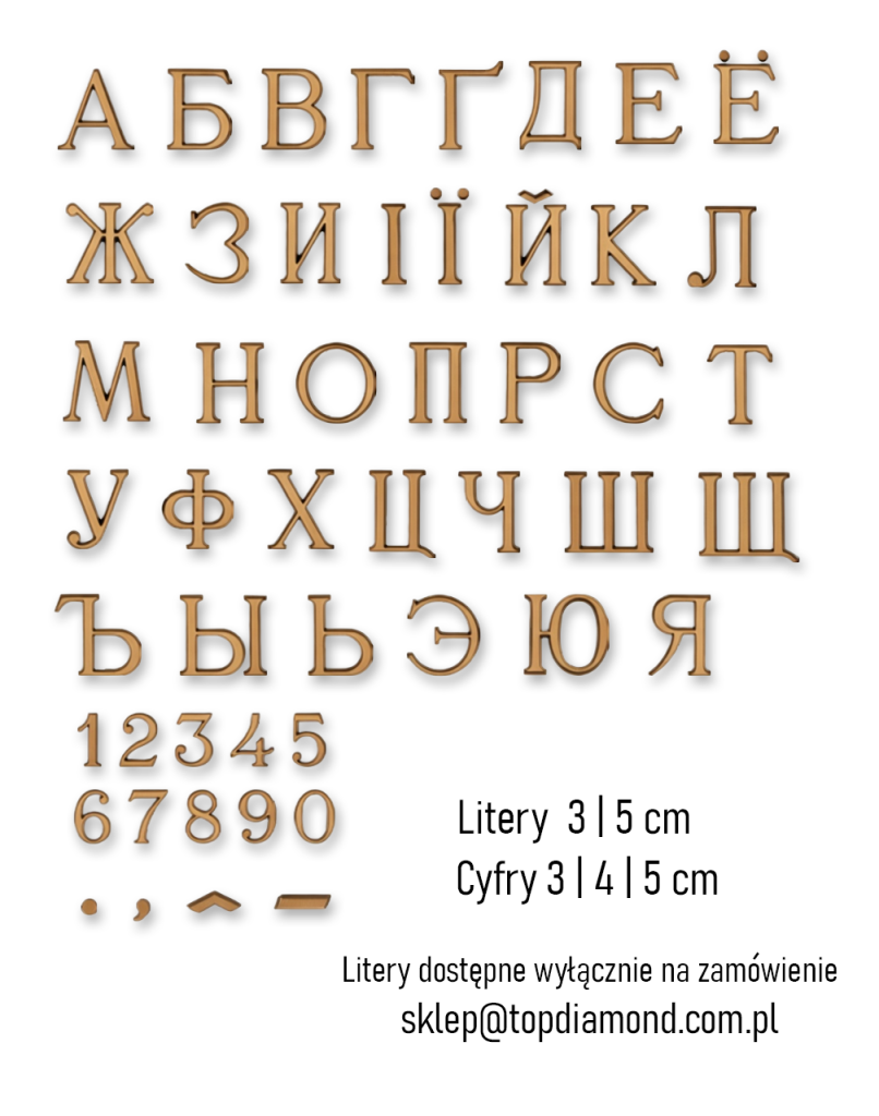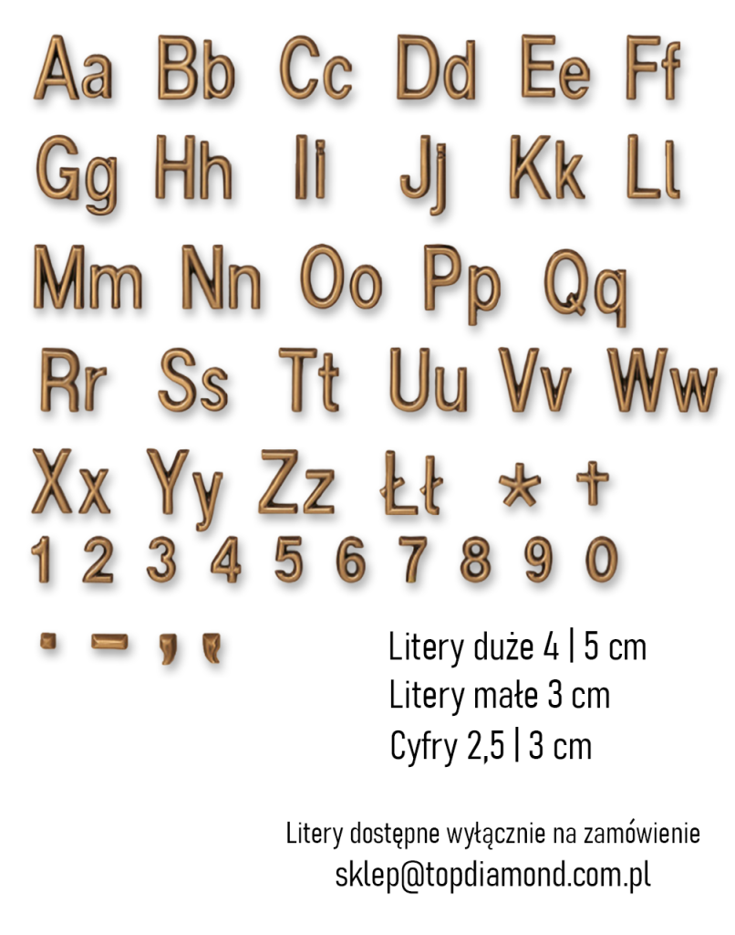 Litery ROMANO ORO są literami dostępnymi tylko na zamówienie. W celu złożenia zamówienia prosimy o kontakt mailowy.