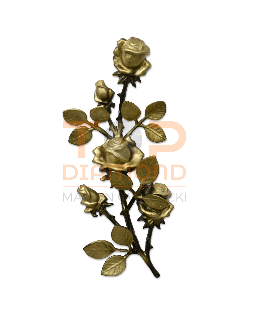 Piękny kwiaty róży z pąkami wykonane z mosiądzu w kolorze złotym.
